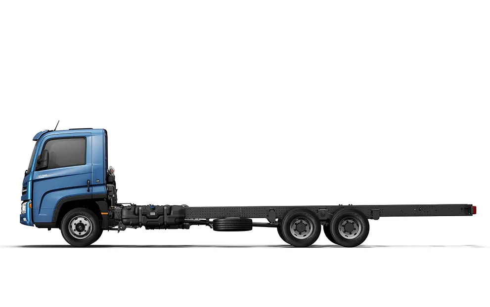 Chassi modular com longarinas simples, com drop e de perfil "U" constante na plataforma de carga